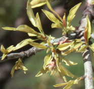 Zinc deficiency symptoms in almond. Photo: UC IPM.