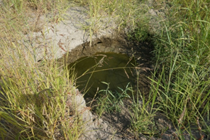 Photo 2. On August 3rd, 2017, the water level was just under 3 feet deep, but the soil was wet to within 15 inches below the surface from capillary rise. Photo: J. Hasey.