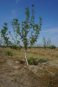 - In early August, most Chandler trees in this orchard were still struggling (Photo 3) whereas the rootstock was growing vigorously on trees where spring grafts had failed (Photo 4). We are studying the effects of waterlogging (anoxia) on roots in this orchard.
