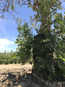 Photo 6. Black rootstock suckering in a Chandler orchard flooded for 4 months next to the Feather River levee in Sutter County. Photo: L. Milliron.