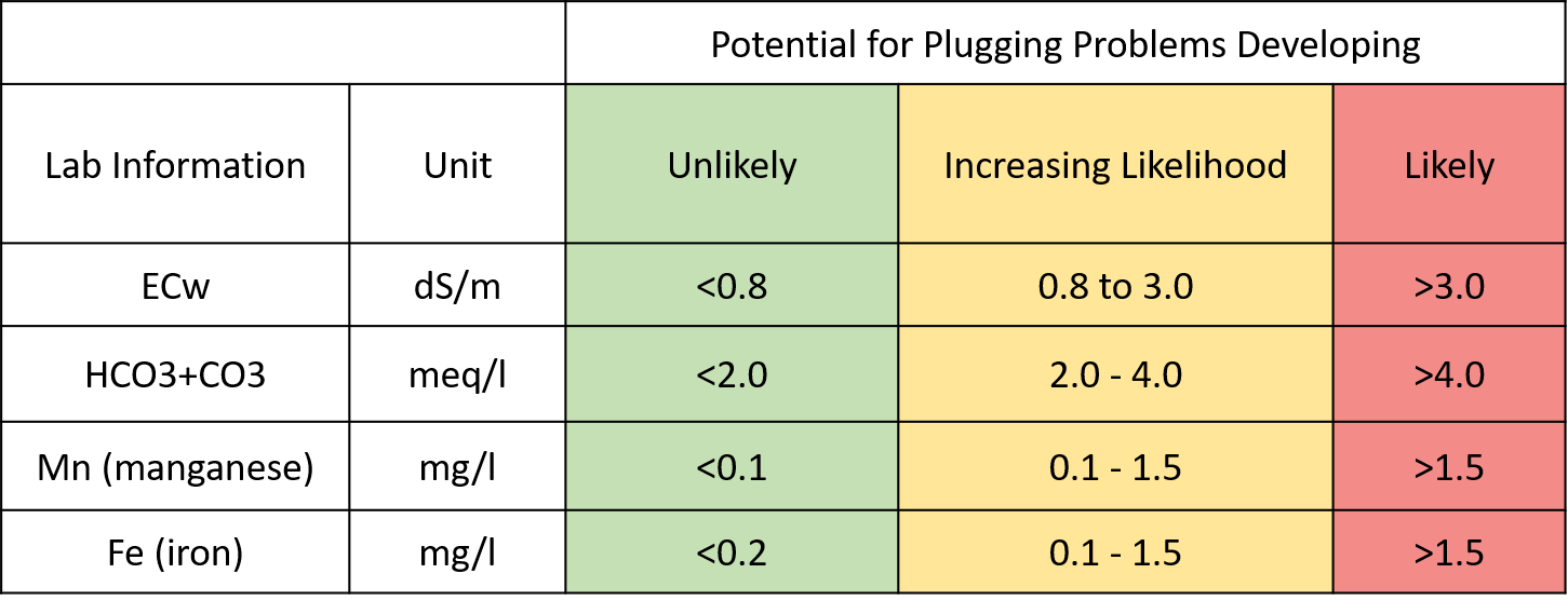 Figure 4. Could the water chemistry be prone to plugging emitters or filters and reduce distribution uniformity?