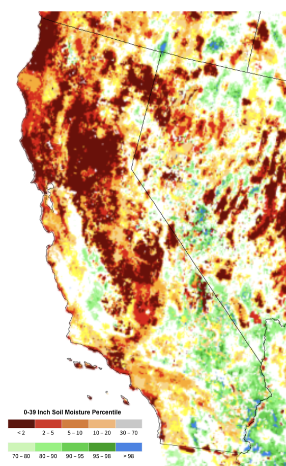 Figure 1. High-resolution 0-39” soil moisture percentile from NASA’s Short-term Prediction and Transition Center – Land Information System (SPoRT-LIS). Retrieved May 12, 2021 by Mallika Nocco.