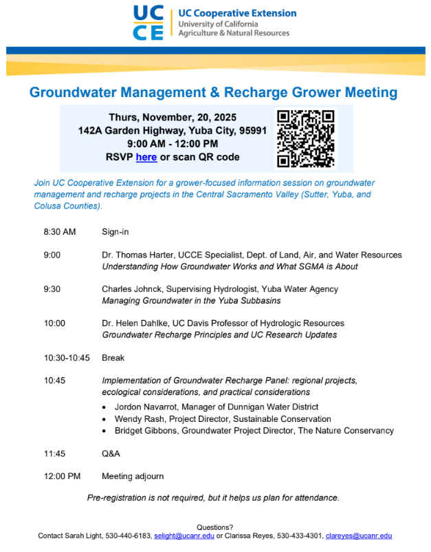 Save the date and join us for a grower-focused information session on groundwater management and recharge!