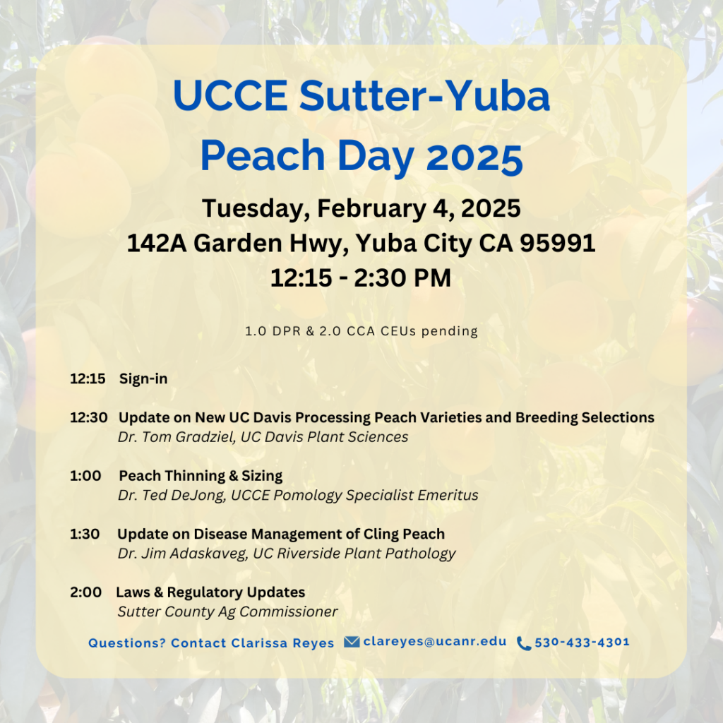 Where: Sutter Co UCCE office, 142A Garden Highway, Yuba City