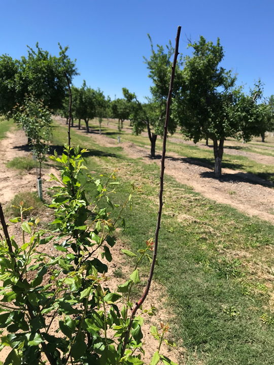 Photo 5. Regrowth below the dieback in an orchard with branch tip dieback suspected to be from a dormant oil application. (photo: Luke Milliron).