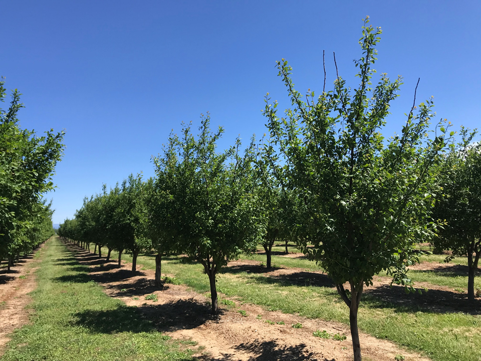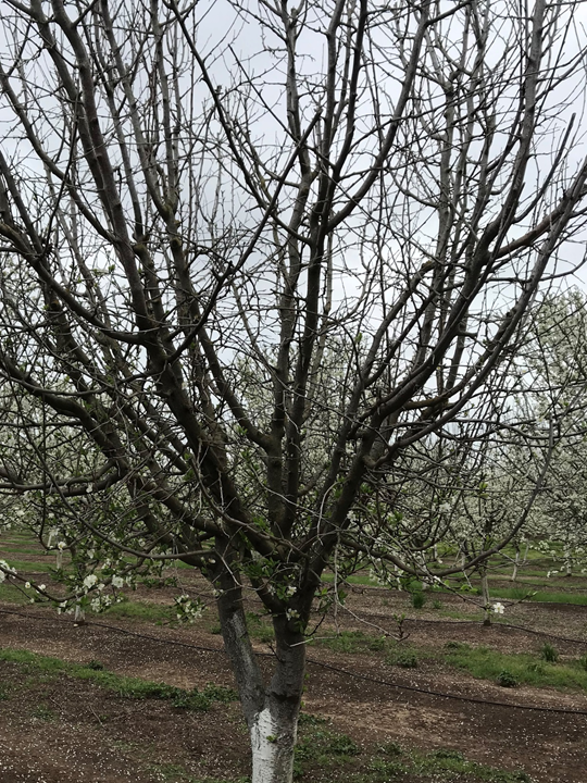 Photo 8. Select patches of trees in this orchard show the extensive dieback consistent with bacterial canker (photo: Luke Milliron).