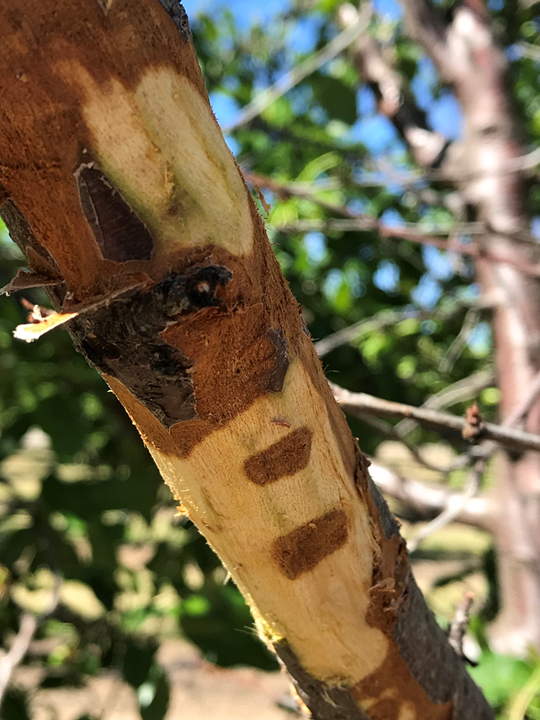 The branch dieback we are seeing in prune orchards have key similarities and differences we used to help diagnose the source of the issue.