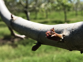 Farm advisors on the east side of the Sacramento Valley began receiving panicked calls in the third week of April from concerned PCAs and growers that large swaths of walnut orchards were only partially leafing out. Even earlier, similar calls were coming in to farm advisors in the northern San Joaquin Valley. The pattern of affected trees has been highly variable across these orchard blocks. Orchard blocks visited have had significant differences including variety, (e.g. Chandler, Howard, Solano, Gillet, Tulare, etc.), rootstock (e.g. Paradox seedling, VX211, Vlach, Black), soil type, irrigation system, and of course management (photos 1-3). Upon closer inspection, twigs on the symptomatic wood have often had a shriveled and desiccated appearance and still had green/living tissue when cut (photos 4-5). Conversely, in some orchards (especially in young blocks) that are not leafing out, cutting into branches reveals characteristic brown freeze damaged tissue next to green healthy tissue (photos 6-7). Orchards with affected trees may appear to have dead canopies, however, adventitious buds are breaking dormancy and may allow for the development of new canopies in some situations (photos 8-11).