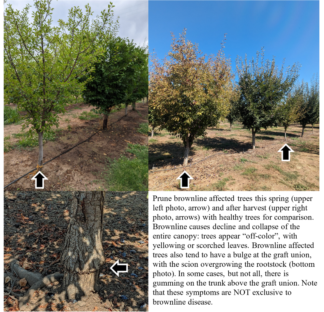 If you have questions about prune brownline disease or think you might have the disease in your orchard, please reach out to njott@ucanr.edu.