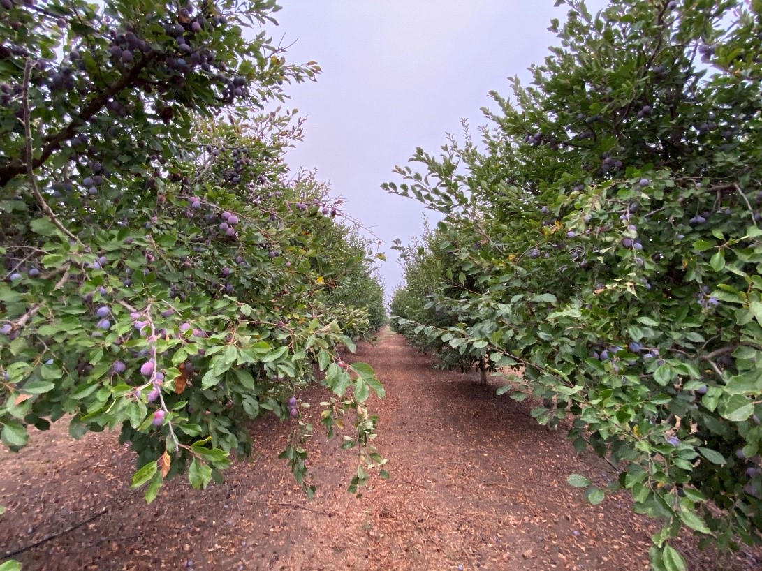 Photo 1. At the Butte rootstock trial site (no bacterial canker pressure) plum rooted trees were among the largest, highest yielding, and provided some of the lowest dry-aways (photo Luke Milliron).