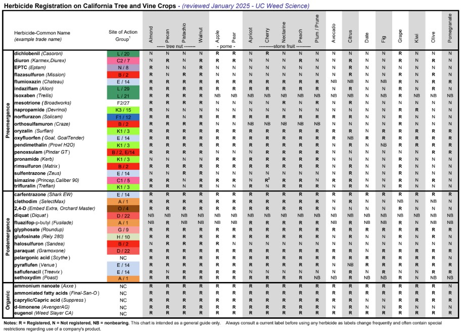 2025 Herbicide Registration on California Tree and Vine Crops